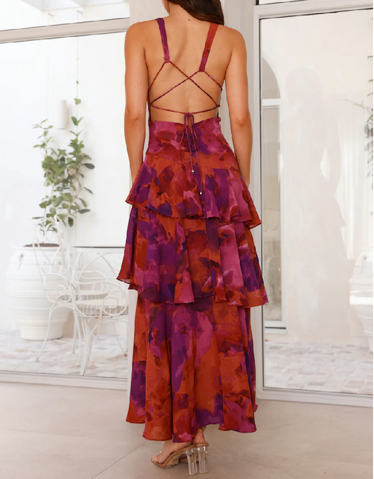 Strappy Back Ruffle Midi Dress